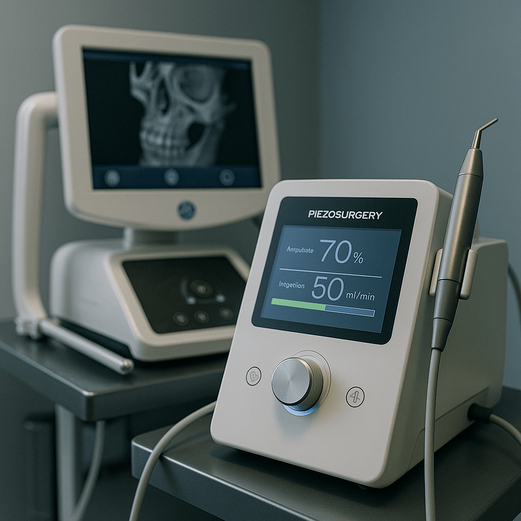 - Utilização de piezocirurgia para maior precisão e menor trauma.